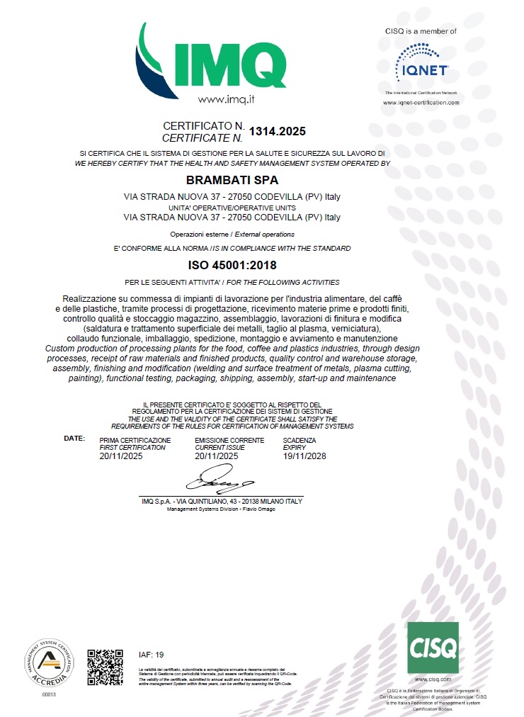Le Groupe Brambati partenaire de Lavazza, grâce à la fiabilité, l’innovation constante, la flexibilité et la recherche technologique